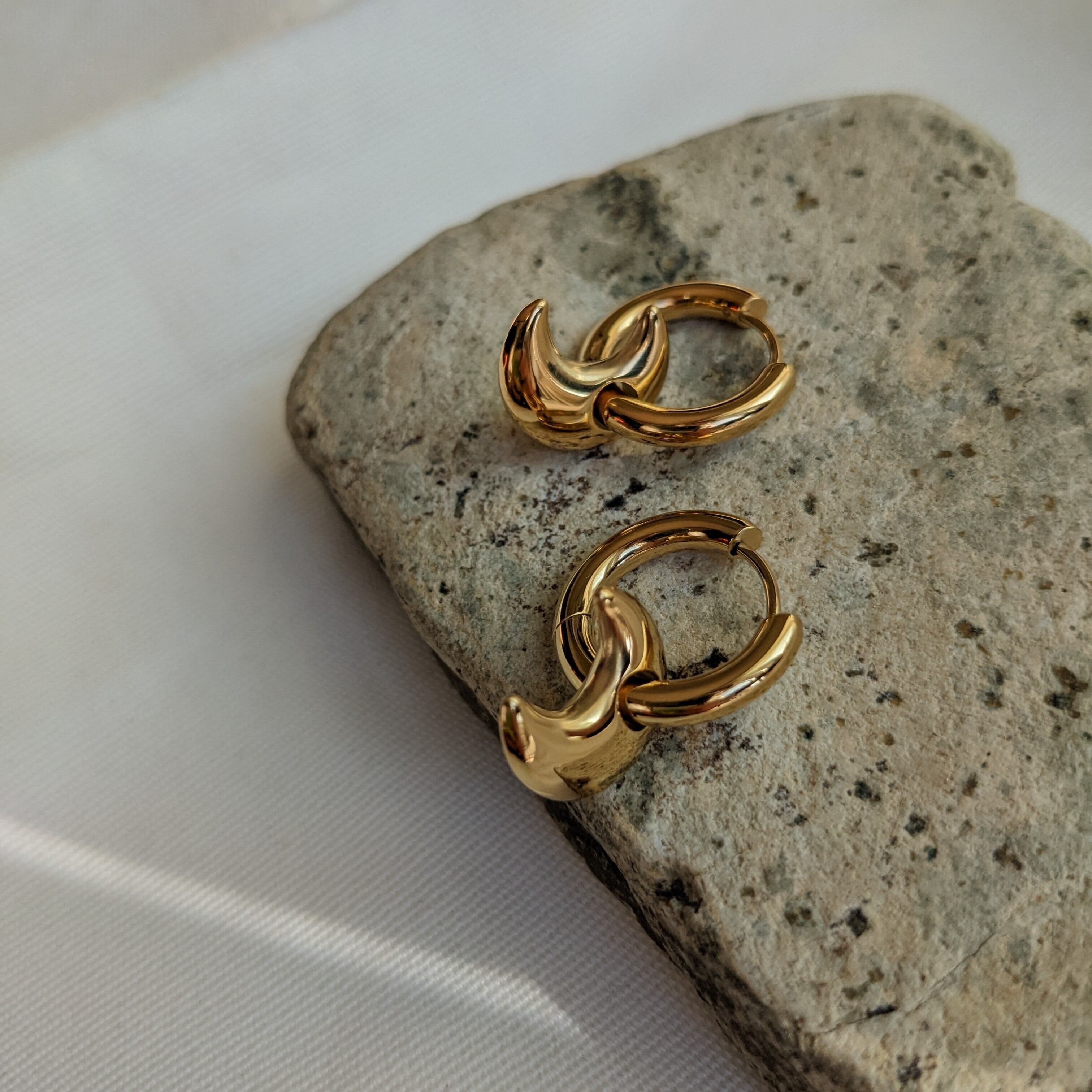 ぷっくりと丸みのある三日月が印象的なフープピアス。三日月は取り外し可能なので、シンプルなフープピアスとしても活用していただけます(^^)